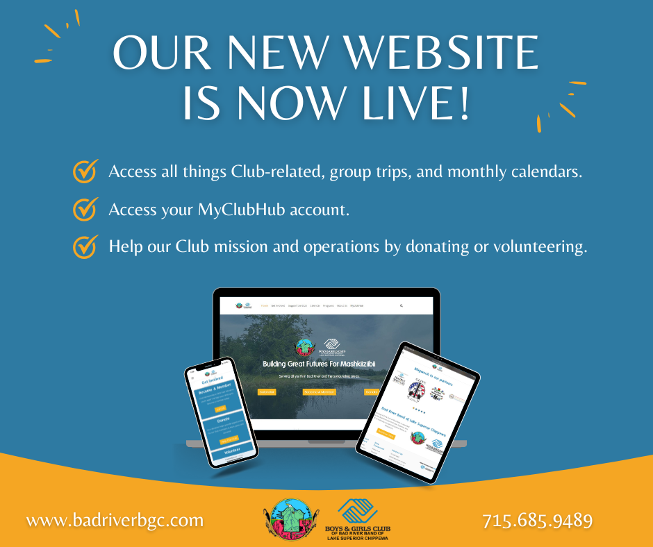 Bad River Boys & Girls Club is now live! Please Click the image below to be taken to the site: