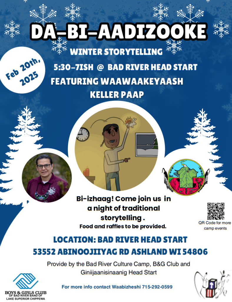 Bad River Culture Camp Details: For more information please reach out to Martin Powless at the following: martin.powless@badriver.com (715) 292-0599 Schedule: