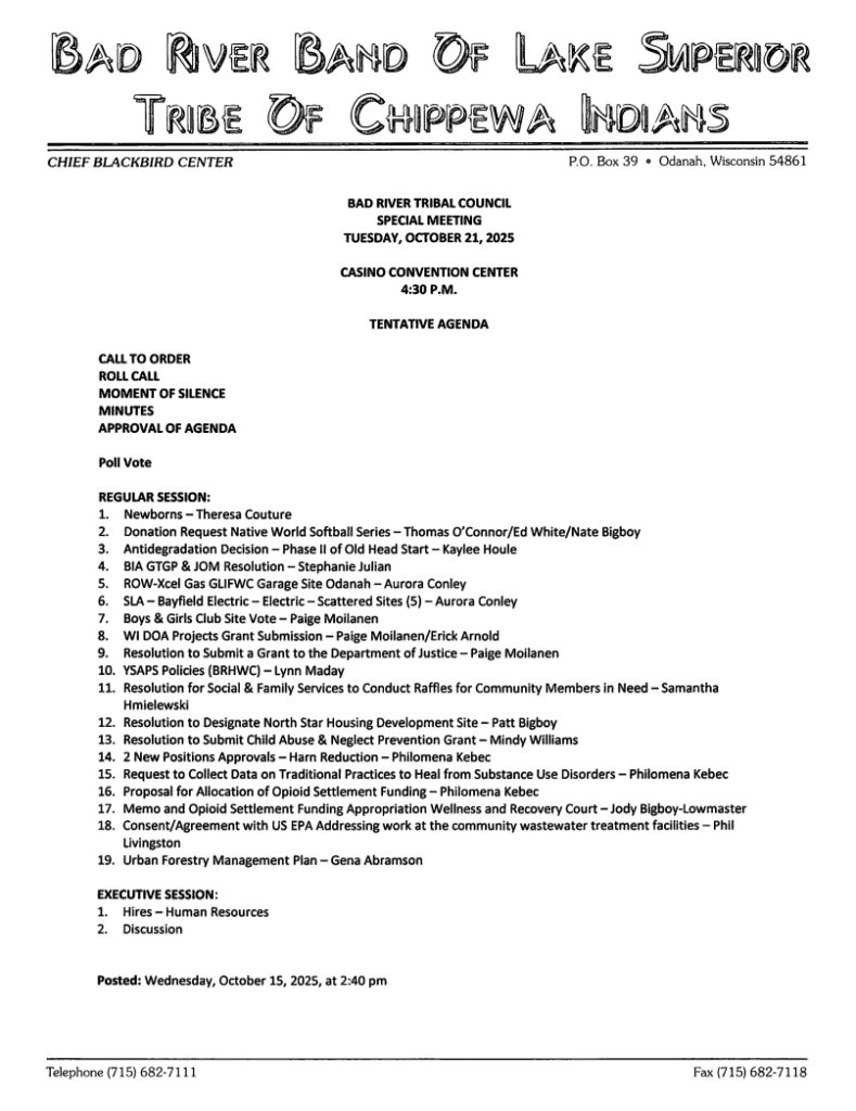 - 2025 Tribal Council Meeting Calendar (this form reflects original meeting dates, not rescheduled meetings)