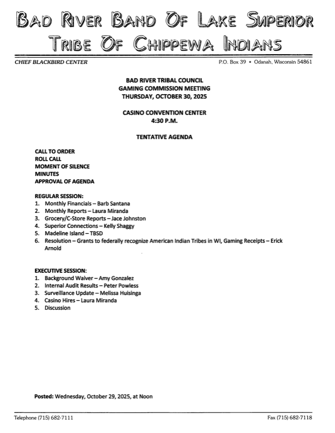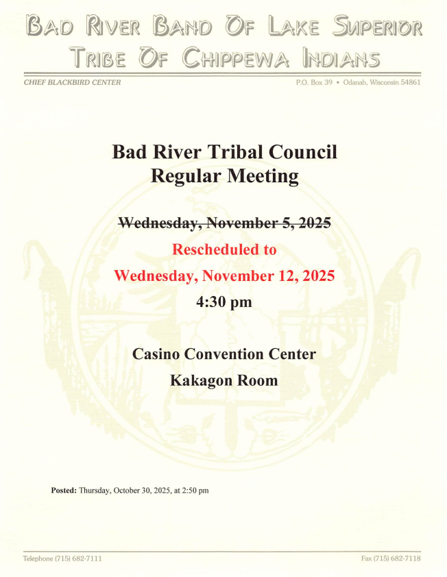 | Treasurer | Patti Neveaux | Treasurer@badriver-nsn.gov | 715-292-8175 |