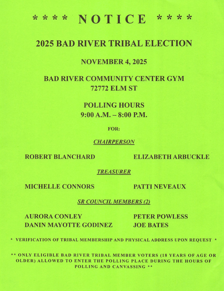 - 2025 Tribal Caucus Results, 118 Registered Voters