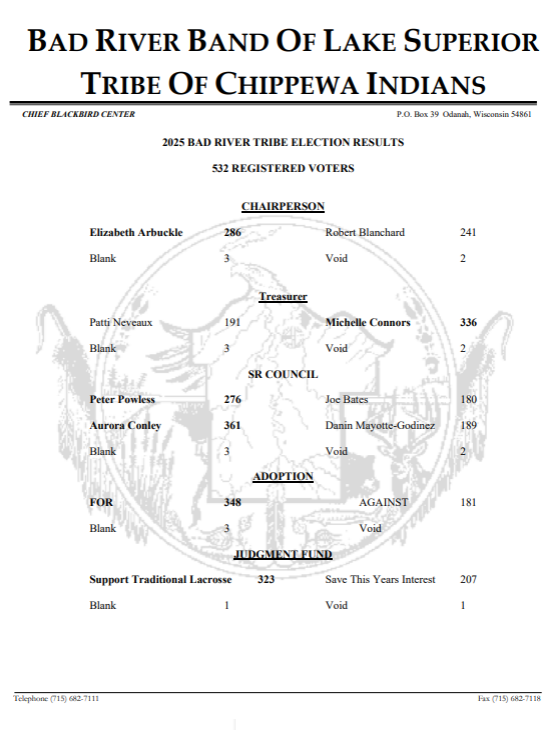 - 2025 Tribal Caucus Results, 118 Registered Voters