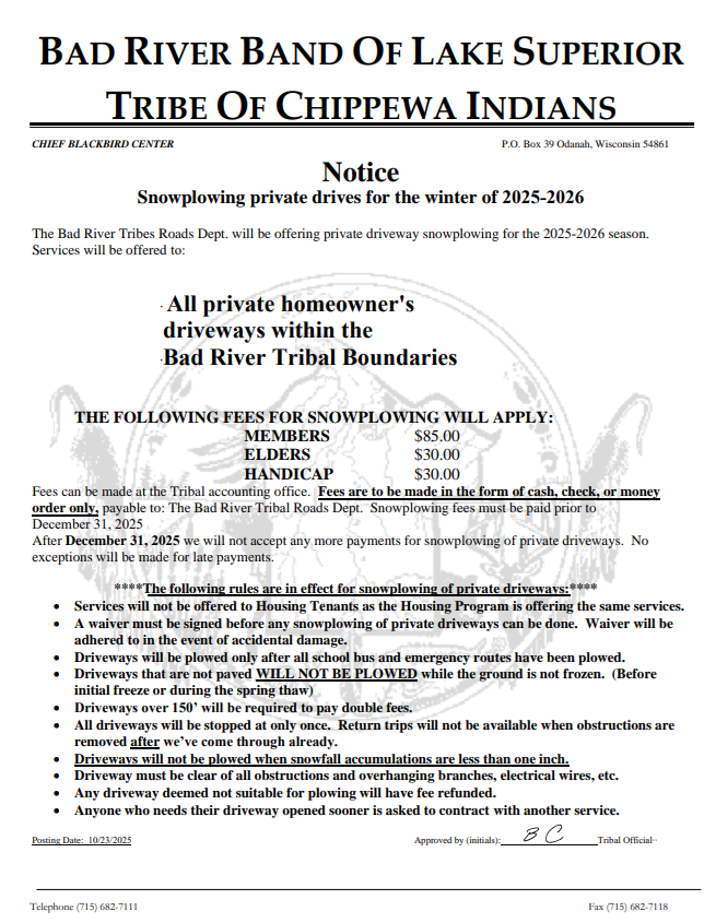 Sign-Up for by emailing: NewsLetter@badriver-nsn.gov