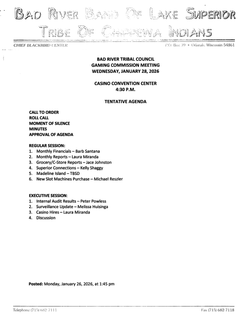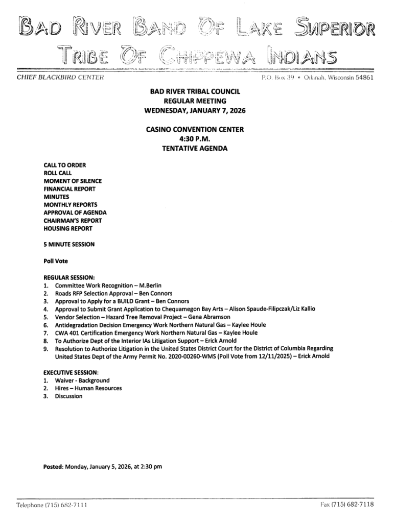 - 2026 Tribal Council Meeting Calendar (this form reflects original meeting dates, not rescheduled meetings)
