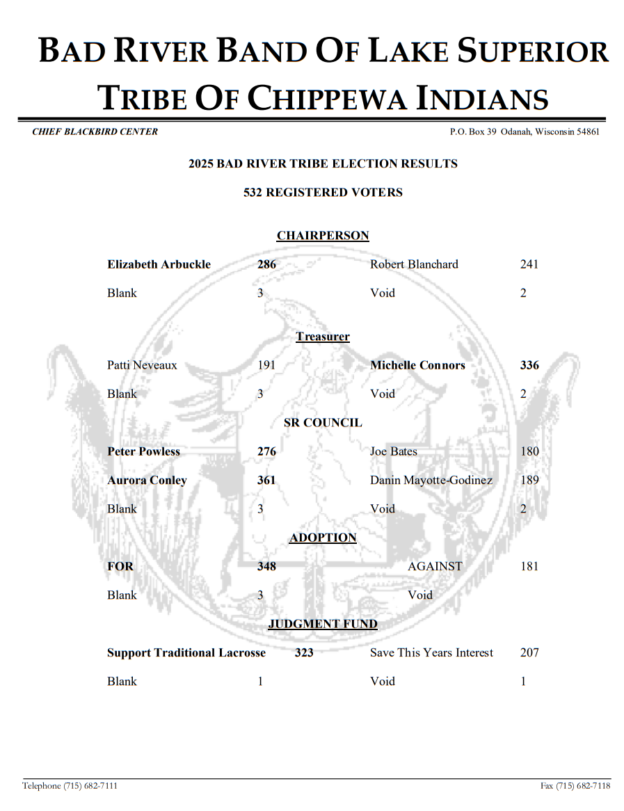 - 2025 Tribal Caucus Results, 118 Registered Voters