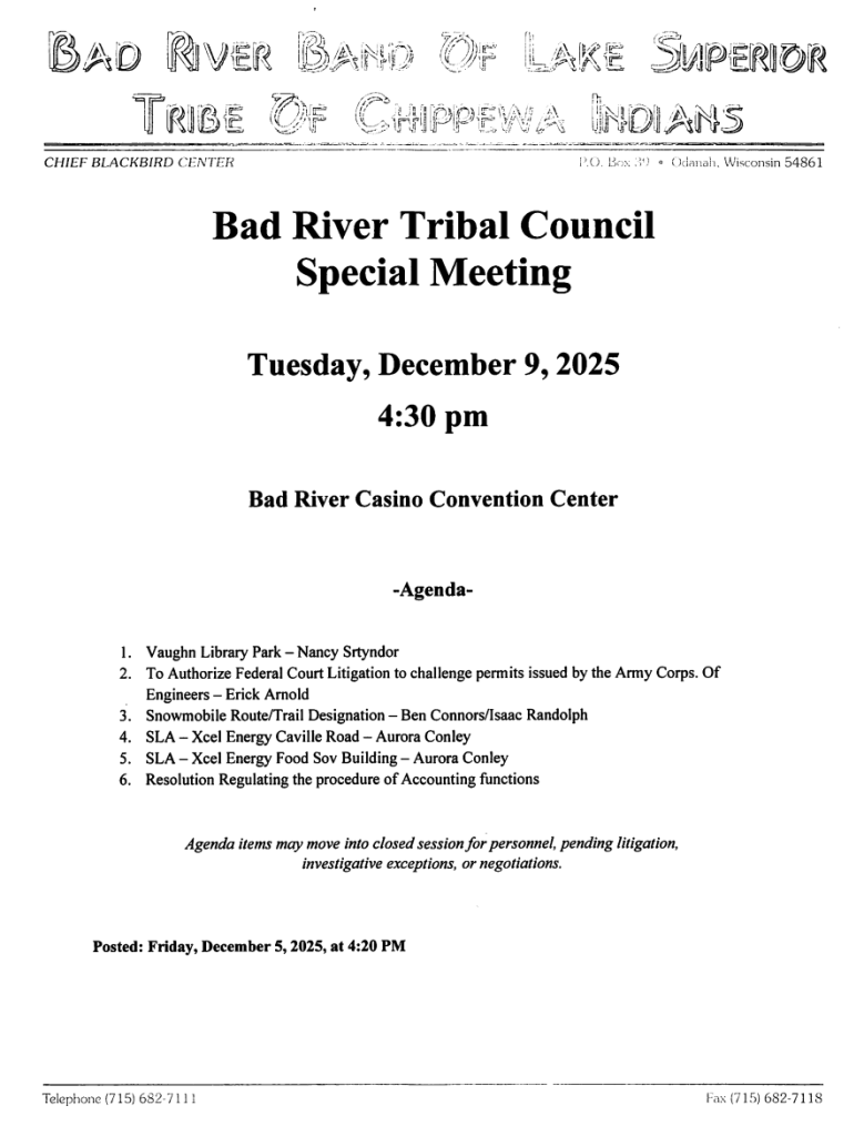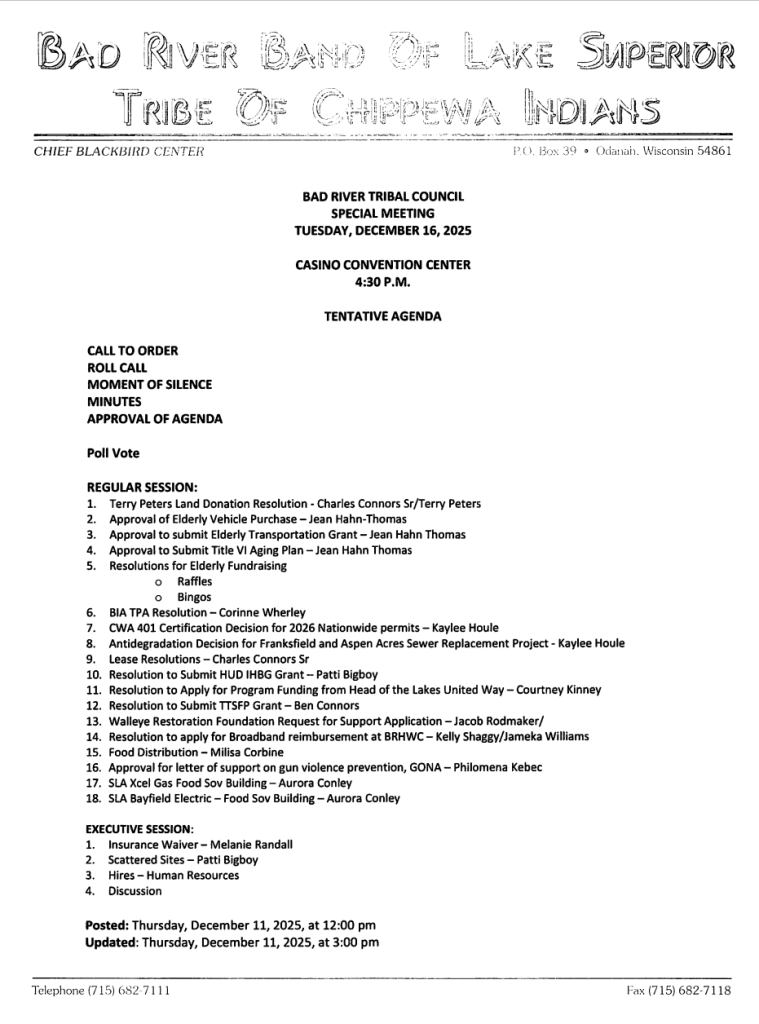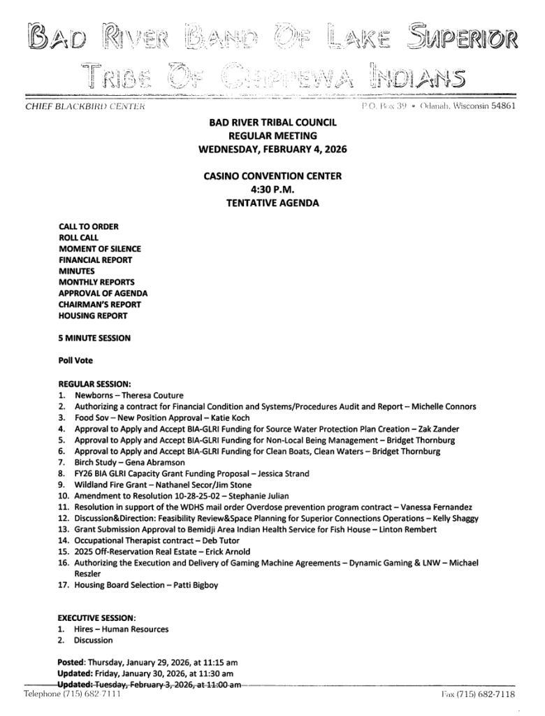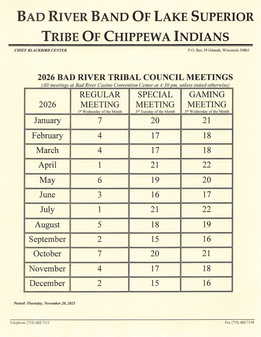 - 2026 Tribal Council Meeting Calendar (this form reflects original meeting dates, not rescheduled meetings)