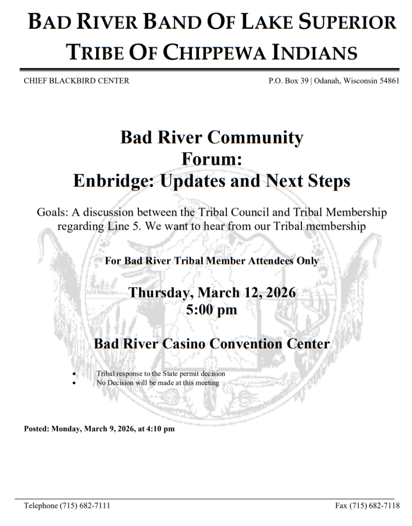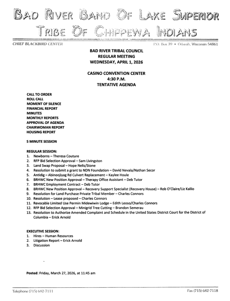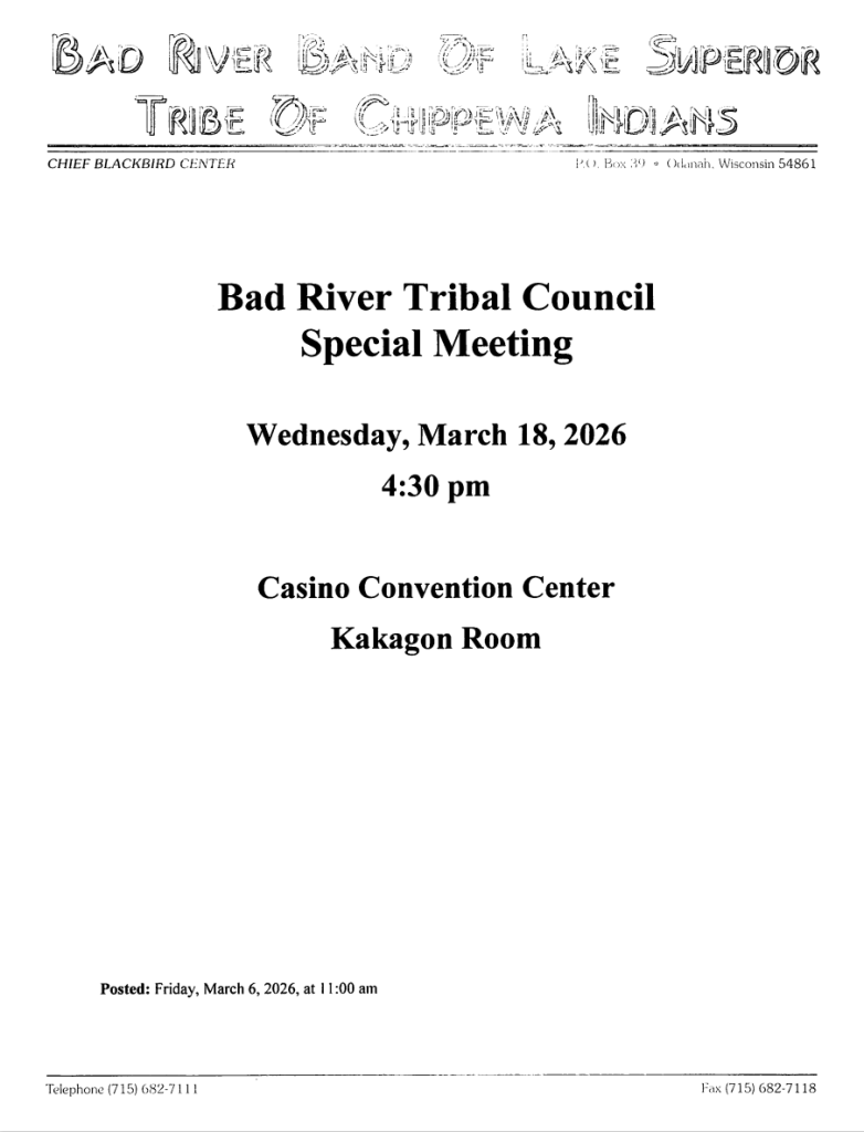 | Tribal Chairperson | Liz Arbuckle | E.Arbuckle@badriver-nsn.gov | 715-292-4841 |