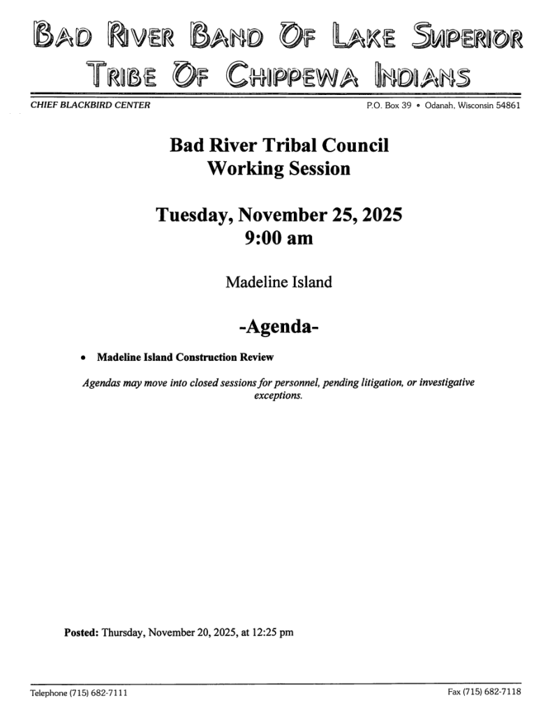 - 2025 Tribal Council Meeting Calendar (this form reflects original meeting dates, not rescheduled meetings)