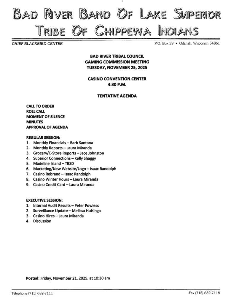 | Vice-Chairman | Patrick Bigboy | P.Bigboy@badriver.com | 715-292-9581 |