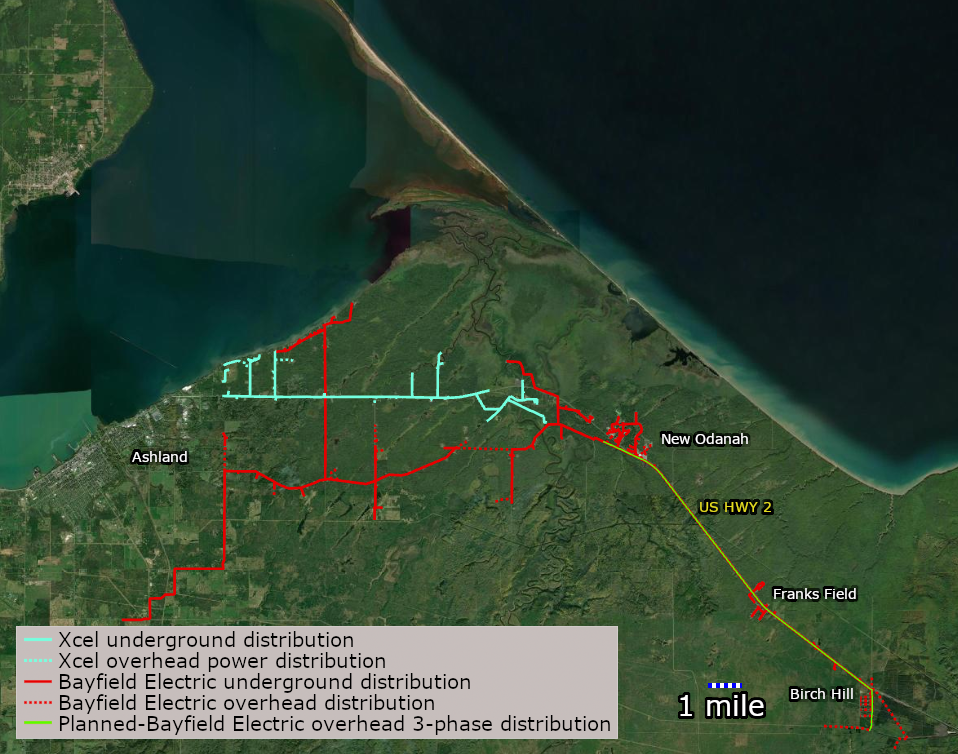 The first step needed in order to install a Minigrid in Bad River is to upgrade the utility lines. The Bayfield electrical distribution system will be upgraded from one phase to three phase. Construction starting in spring of 2026.