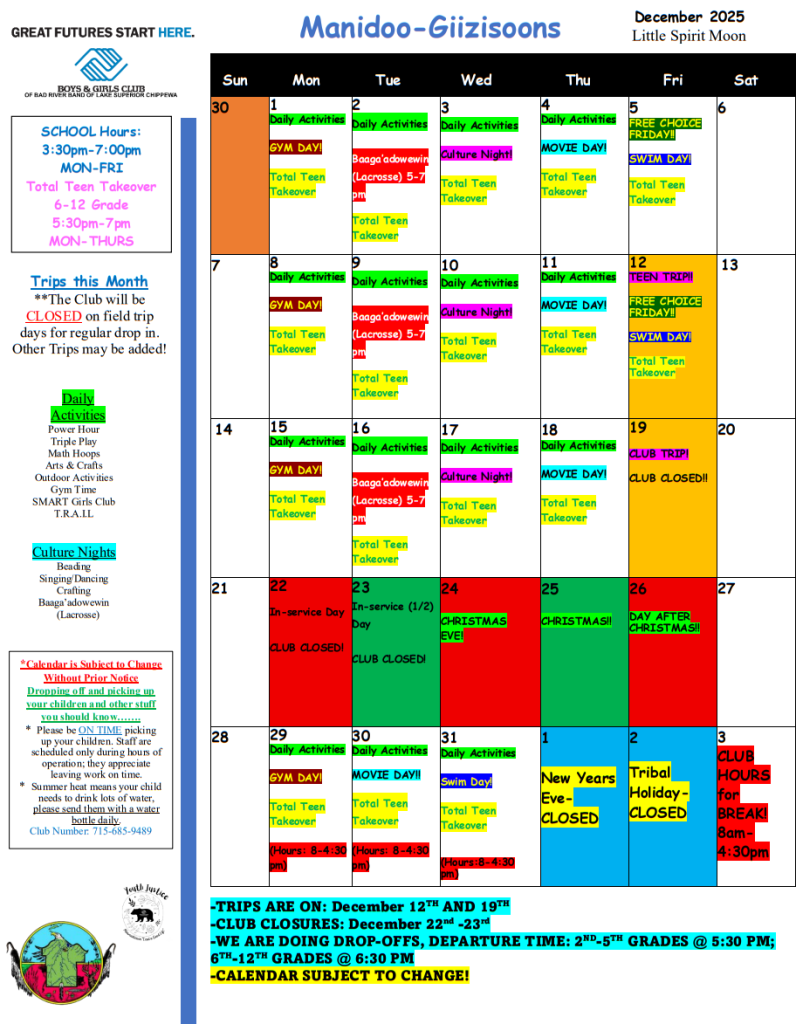 Membership registration for the Boys & Girls Club of the Bad River Band of Lake Superior Chippewa is now open.