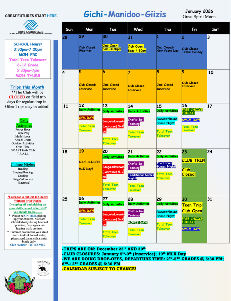 Membership registration for the Boys & Girls Club of the Bad River Band of Lake Superior Chippewa is now open.