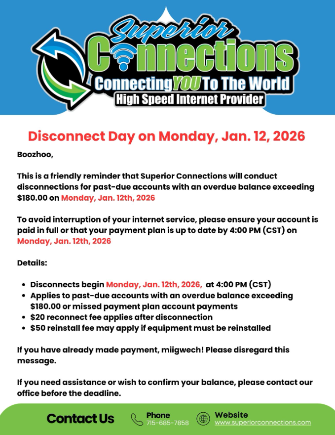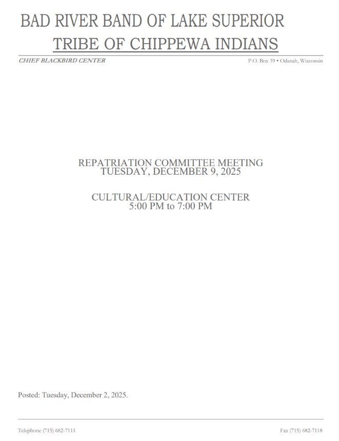 Sign-Up for by emailing: NewsLetter@badriver-nsn.gov