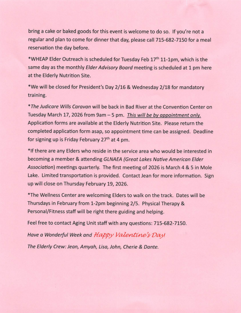 | Social & Family Services | Office Assistant | VACANT | AgingOffice@badriver-nsn.gov | (715) 682-7150 | 1496 |