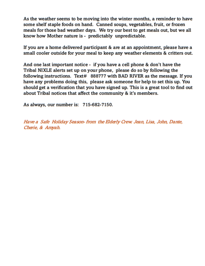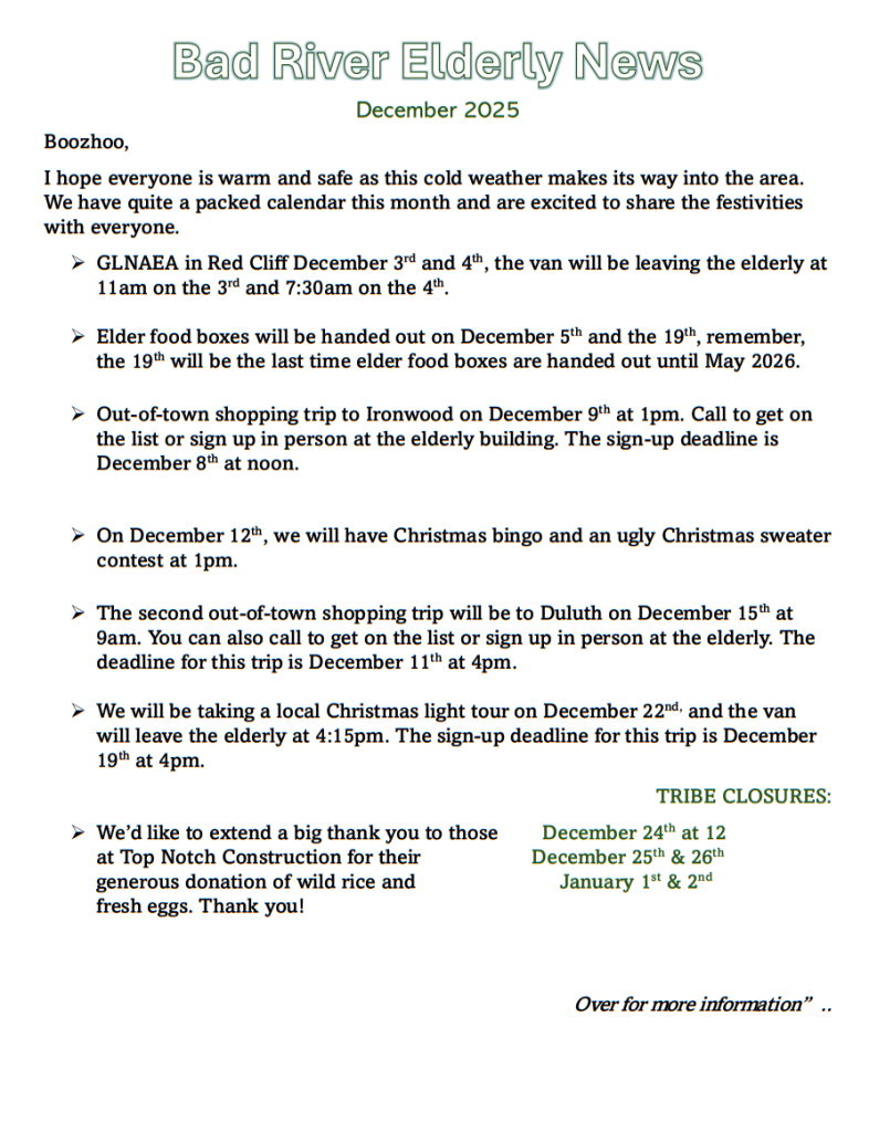 | Social & Family Services | Aging Director | Jean Hahn-Thomas | AgingDirector@badriver-nsn.gov | (715) 292-0037 | (715) 682-7150 | 1495 |